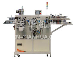 該機(jī)能實(shí)現(xiàn)金屬帶自動(dòng)放帶、校直、切斷;膠帶自動(dòng)放帶、送帶、粘貼、切斷以及極片自動(dòng)放帶自動(dòng)剪切等一系列動(dòng)作。該機(jī)整體動(dòng)作連貫、流暢。