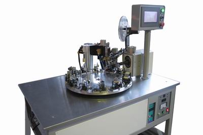鋁殼負(fù)極底半自動(dòng)焊機(jī) 一、 概述: 鋁殼負(fù)極底半自動(dòng)焊接機(jī)是針對(duì)鋰離子電池鋁殼底面鎳鋁復(fù)合材料自動(dòng)焊接而制作的專用設(shè)備。具有單一操作方便、焊接位置及焊接牢度一致性好、工人掌握熟練后生產(chǎn)效率高等優(yōu)點(diǎn)。 二、 機(jī)器功能: 本機(jī)由一名工人手工將焊接完畢的電池殼從模芯上拔下,將待焊電池殼插入芯模,鎳鋁復(fù)合材料為卷帶狀直接置入放帶器上,自動(dòng)送進(jìn)(送進(jìn)長(zhǎng)度可調(diào))、自動(dòng)切斷、自動(dòng)送進(jìn)至鋁殼底部中心位置,自動(dòng)點(diǎn)焊定位、轉(zhuǎn)盤轉(zhuǎn)動(dòng)移位至超聲波焊接,轉(zhuǎn)盤轉(zhuǎn)動(dòng)移位至上下料工位再往復(fù)動(dòng)作。(注:如配置上下料送進(jìn)裝卸裝置,可形成全自動(dòng)) 三、 機(jī)器配置: 整機(jī)動(dòng)作全過程由松下產(chǎn)PLC程序控制,調(diào)整及操作工作速度(轉(zhuǎn)盤及其它機(jī)械動(dòng)作)根據(jù)工人操作熟練程度可調(diào),可由LED界面完成。 本機(jī)配備了有缺料檢測(cè)系統(tǒng),當(dāng)檢測(cè)到未裝入工件時(shí)除轉(zhuǎn)盤繼續(xù)轉(zhuǎn)動(dòng)外,其它工位動(dòng)作均停止,以防止無工件狀態(tài)下其它工位動(dòng)作對(duì)機(jī)器帶來的損壞。 本機(jī)配備了鎳鋁帶自動(dòng)放帶、切斷以及送進(jìn)系統(tǒng),以利于鎳鋁復(fù)合帶的連續(xù)送進(jìn)、切斷、送至焊接位置。 切斷后的鎳鋁復(fù)合帶系采用真空吸嘴吸附送進(jìn)。 本機(jī)配置了精密交流雙點(diǎn)點(diǎn)焊機(jī)及超聲波點(diǎn)焊機(jī)各一臺(tái),以完成鎳鋁復(fù)合帶在鋁殼底部的預(yù)點(diǎn)焊及真實(shí)焊接過程。 本機(jī)配置了O型凸輪分度器加轉(zhuǎn)盤的傳動(dòng)機(jī)構(gòu),其定位準(zhǔn)確積累誤差始終≤ 本機(jī)其它工位動(dòng)作采用氣動(dòng)傳動(dòng)并均配備了可調(diào)節(jié)功能及磁感應(yīng)定位系統(tǒng)。 本機(jī)共配備12套定位芯模,該定位芯模可實(shí)現(xiàn)不同規(guī)格鋁殼的適應(yīng)性調(diào)整,更換不同規(guī)格鋁殼時(shí)只需調(diào)整模芯的定位靠山,無需更換模具任何一個(gè)工件,且調(diào)整極為方便。 四、 整機(jī)及各主要配置技術(shù)參數(shù): 1、 整機(jī): 供電電源 380V50HZ 供氣氣源 0.6Mpa/ 電機(jī)功率 0.4kw 轉(zhuǎn)位速度 20-40次/min可調(diào) 外形尺寸 長(zhǎng)*寬*高 1200*800*1460mm 2、 預(yù)點(diǎn)焊用精密交流點(diǎn)焊機(jī) 焊接變壓器****功率 3KVA ****輸出電流 0.4KA 焊接時(shí)間 20-360毫秒可調(diào) 機(jī)頭****行程 焊接壓力 5 焊針直徑及材料 φ3氧化鋁銅 3、 焊接用超聲波點(diǎn)焊機(jī) 超聲波****功率 1500W 超聲波頻率 ≈24KHZ 焊點(diǎn)尺寸 焊頭****行程 焊接壓力 10 焊接拉力 ≥ |